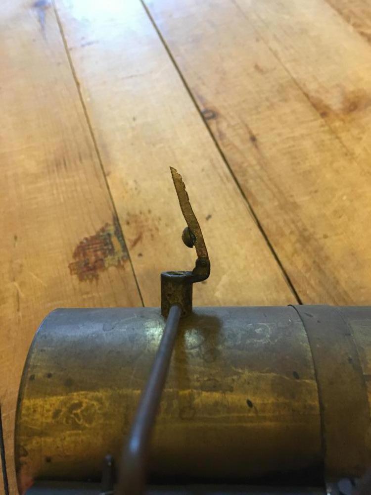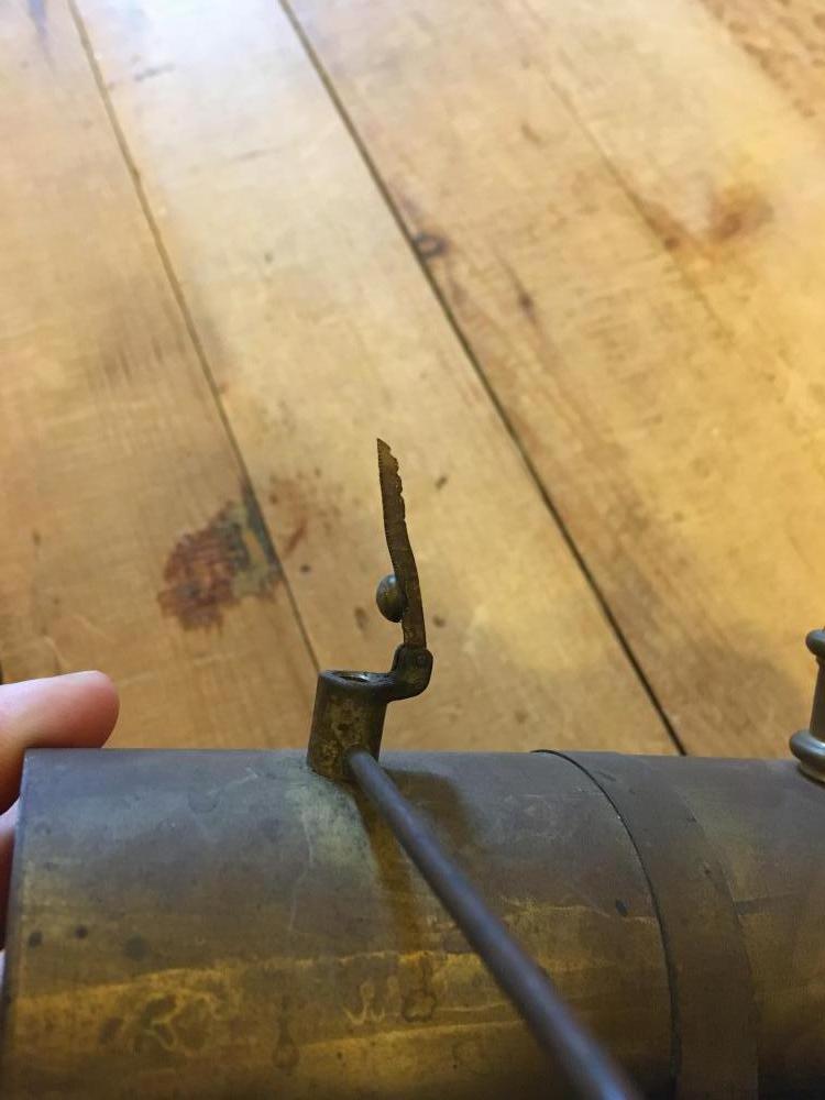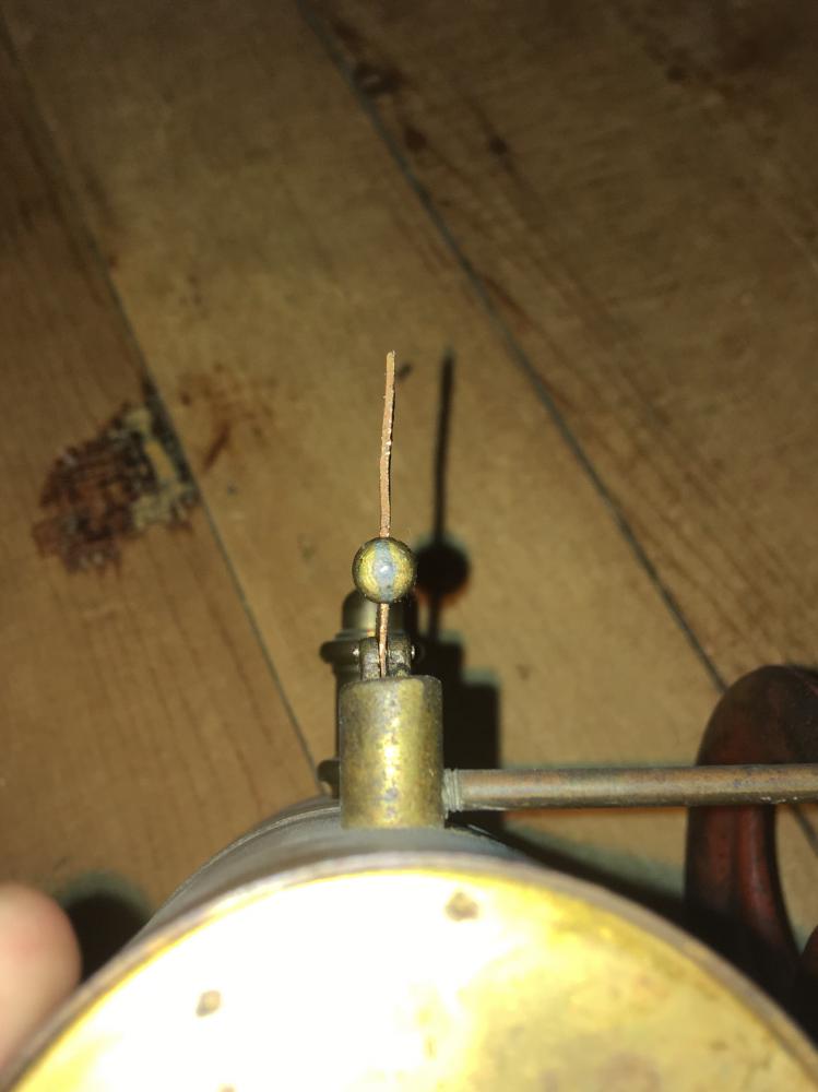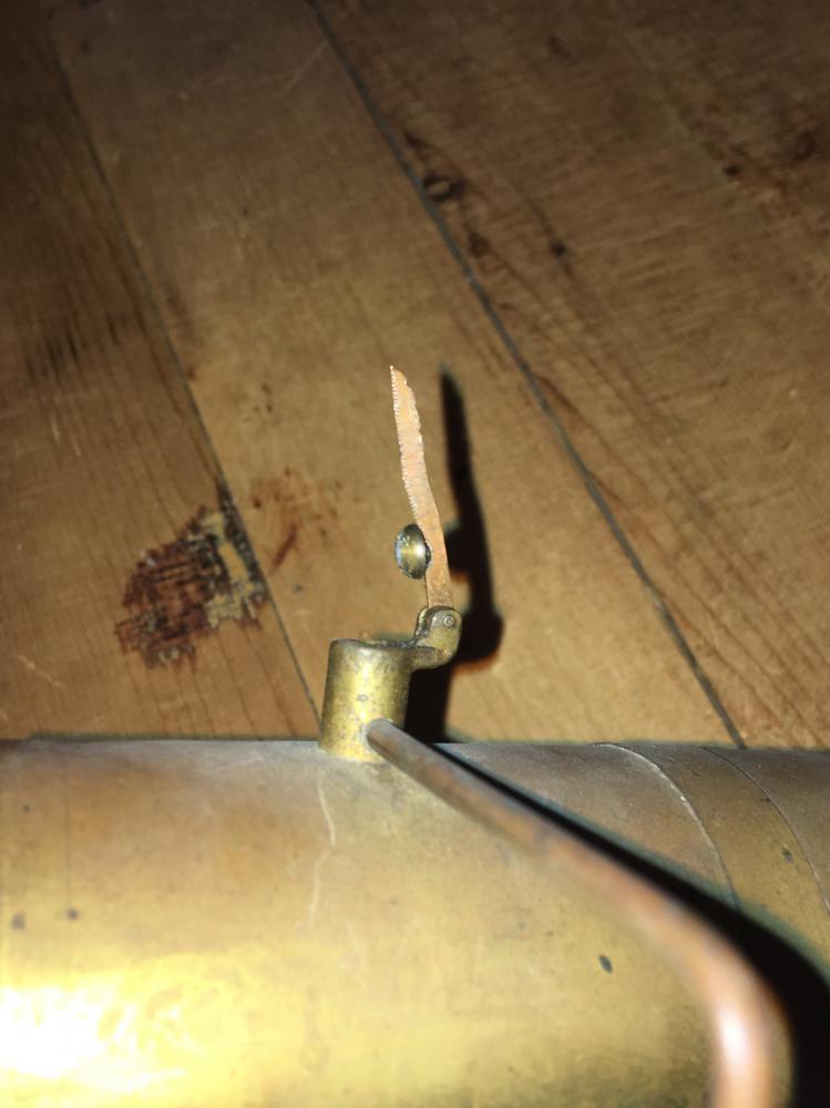 I do not know if any of my Buckmans have an original arm/weight/stopper as they are all different. The one on this engine is homemade from a strip of copper and a screw head soldered on. The slot is filled with solder, very clever and easy way to make the seal. Hopefully you can see it in one of these pictures...