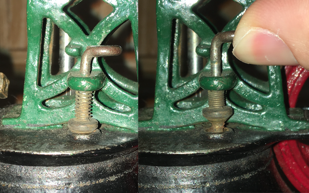 The safety valve simply pops up, but with the spring on the outside of the boiler. I'll take a close up picture for you...