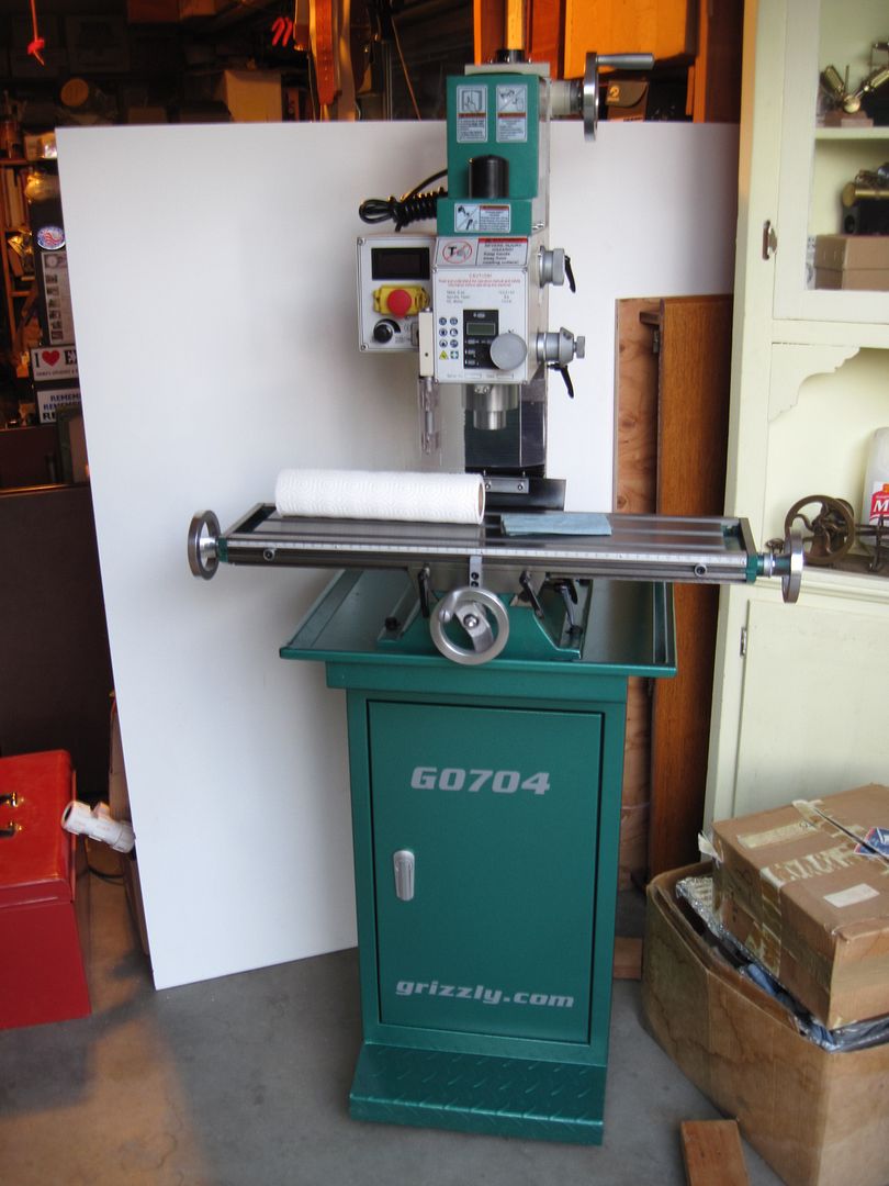 Here is a brand new (now 8 yrs old), just unloaded and assembled little milling machine, pre-DRO. It actually ended up about two feet to the left and rotated CCW 45 degrees: