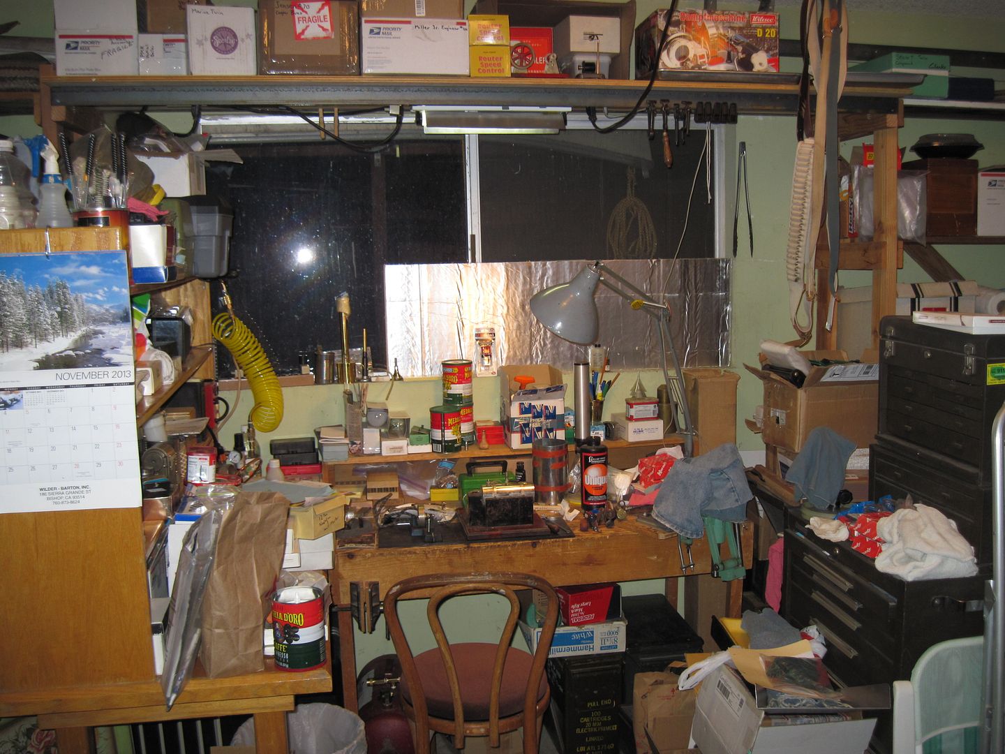 Now my "shop" has more like fifty pounds of "stuff", but still fitted into only a five-pound bag, such that to do almost anything at all, I have to move stuff around which in winter is mostly a no-go because outside is typically off limits.