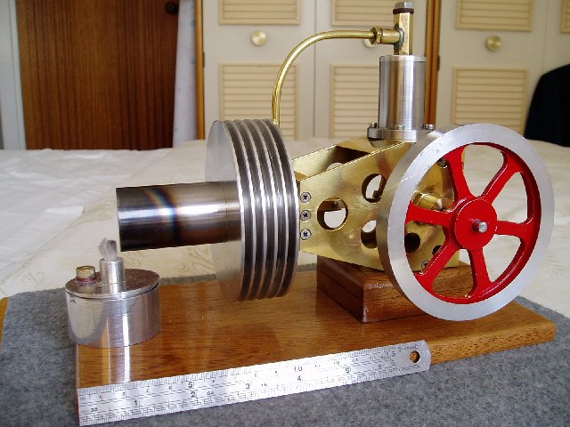 The original balsa wood displacer, has now been replaced by a Lyles golden syrup tin. It is now meths fired.