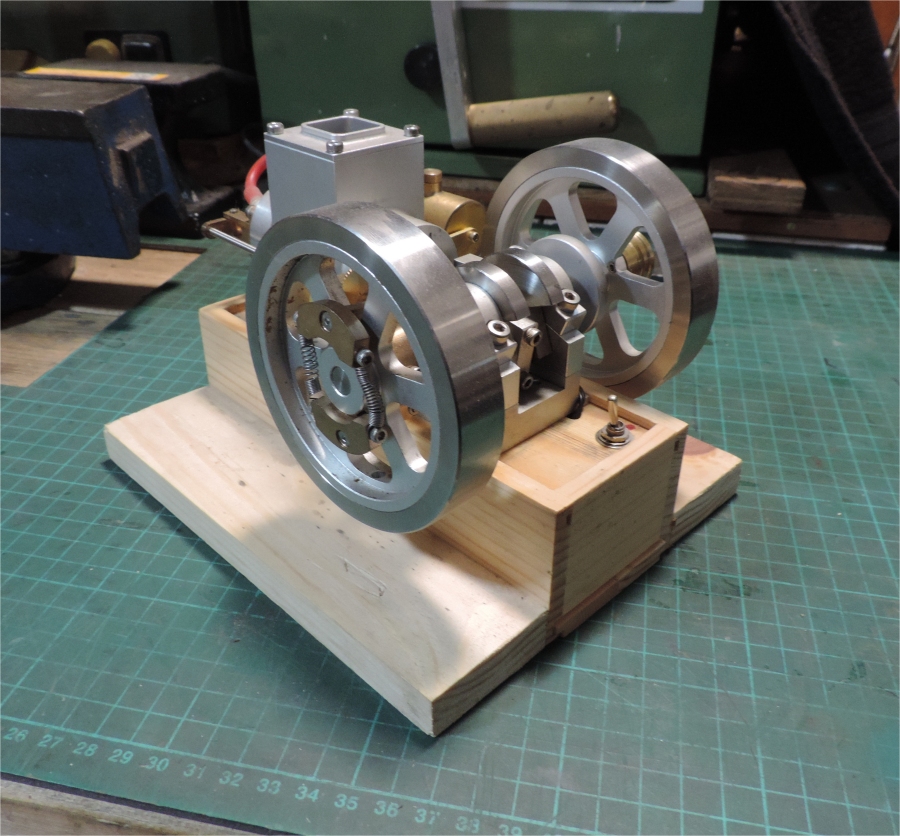 I simply glued a couple of battens on to the sides of the wooden box. This allows you to easily clamp the engine to the bench you are running it on.