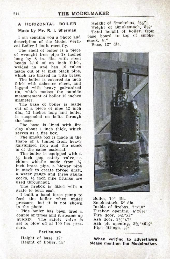 Re: Vertical Boiler - 1928