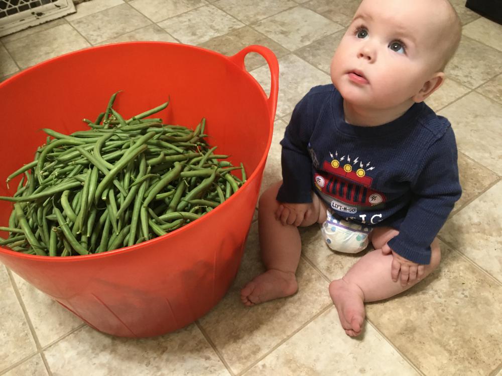 Well 3 years later, found the same shirt and blanket, picked some more beans and here’s our youngest