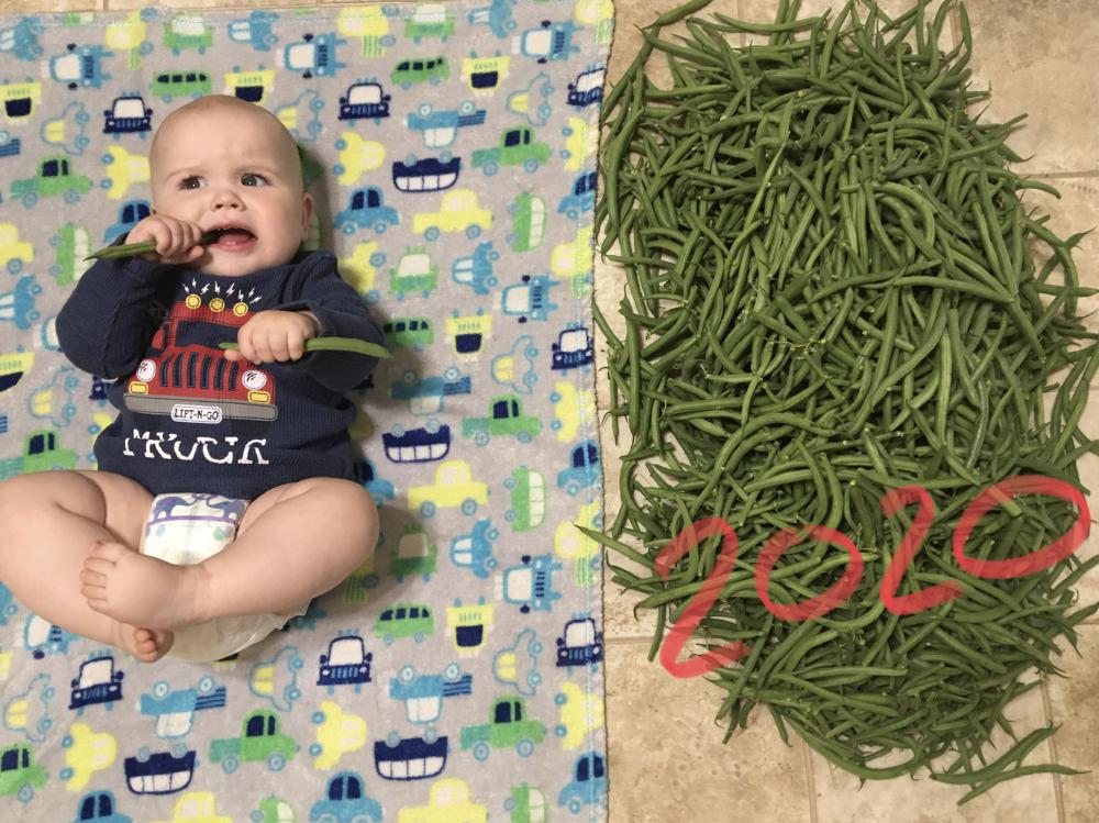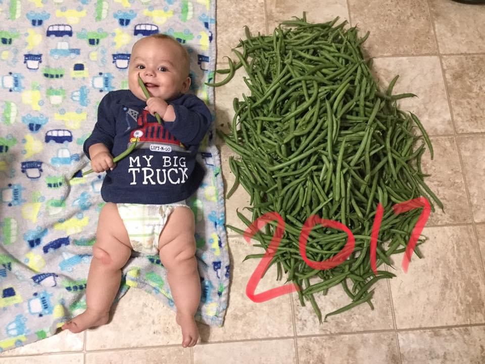 We picked the last of our green beans and had to recreate a picture... Some of you may remember this first picture taken 3 years ago (2017) of our middle child and stash of beans