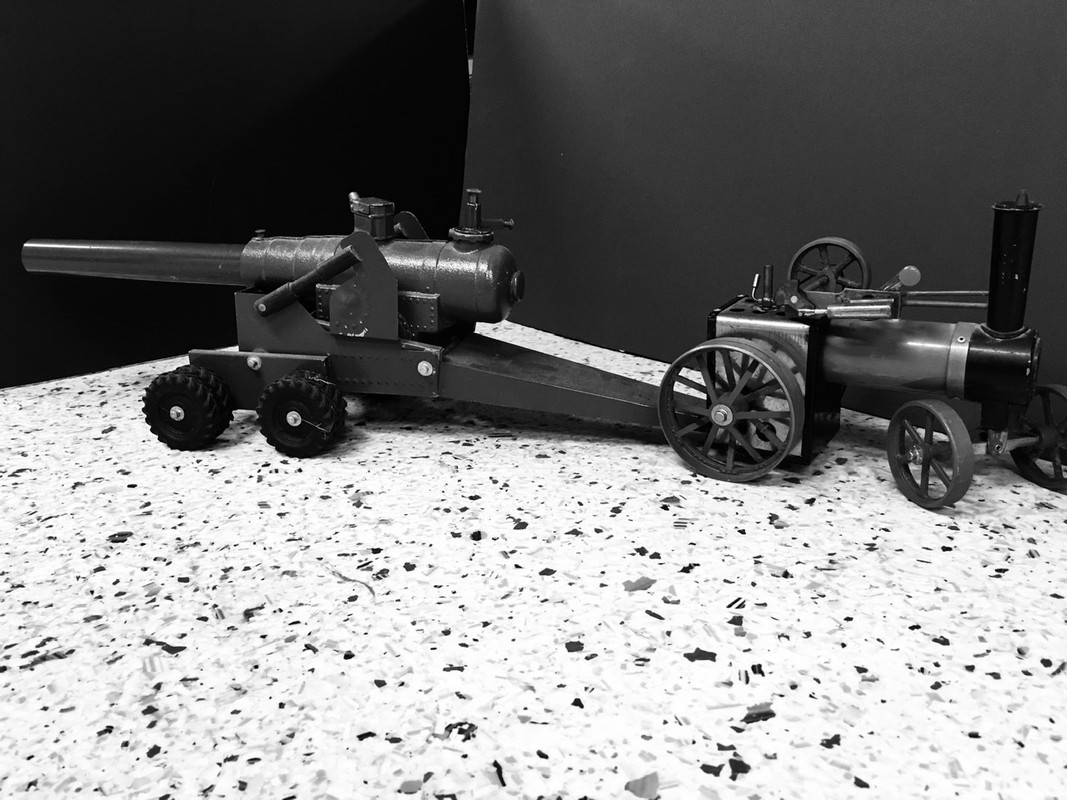I looked at my shelf of steam stuff and Karl of Marx said he would denounce any other steam toy if the mob would spare him, and he would welcome the hope & changes of the Bolsheviks if they would give him a Playstation 2 and a maryjuana joint (he is wearing a dress now and prefers the pronoun zerr). The Marvin Industries old engine is defiant and has talked the Mamod Te1a into hitching up a Big Bang Cannon.
