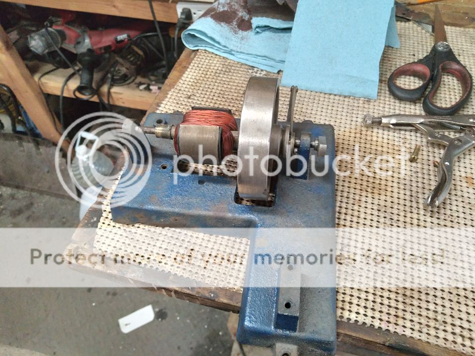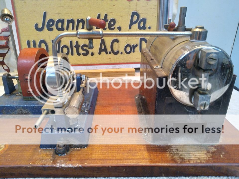 because of the unusually long axle & the snug fit of the generator magnet on the axle, this took a little bit of adjusting to keep the armature from rubbing the horseshoe magnet. my other challenge was , after I got it all together I noticed a crack in the cylinder wall (very common problem with these old flat end cylinder caps) moreover the soldered joint between the cylinder & steam chest was porous and loosing steam all along the solder joint, it was so bad that I couldn't hold my finger under the steam cylinder without incurring a steam burn (found this when running pinky around to see if I had a seepage leaks) I touched up the entire joint & fixed the problem , the engine would run the light but I knew it should have more power, after touching up the solder I believe I gained 30-40% more power , prior to repairing the joint when I closed the throttle it only had slight resistance to flipping the flywheel over by hand...after the repair it had a more solid lock up of the flywheel when the throttle was in the closed position.\(I am telling you all this ,so if anybody else has this problem you can diagnose it.)