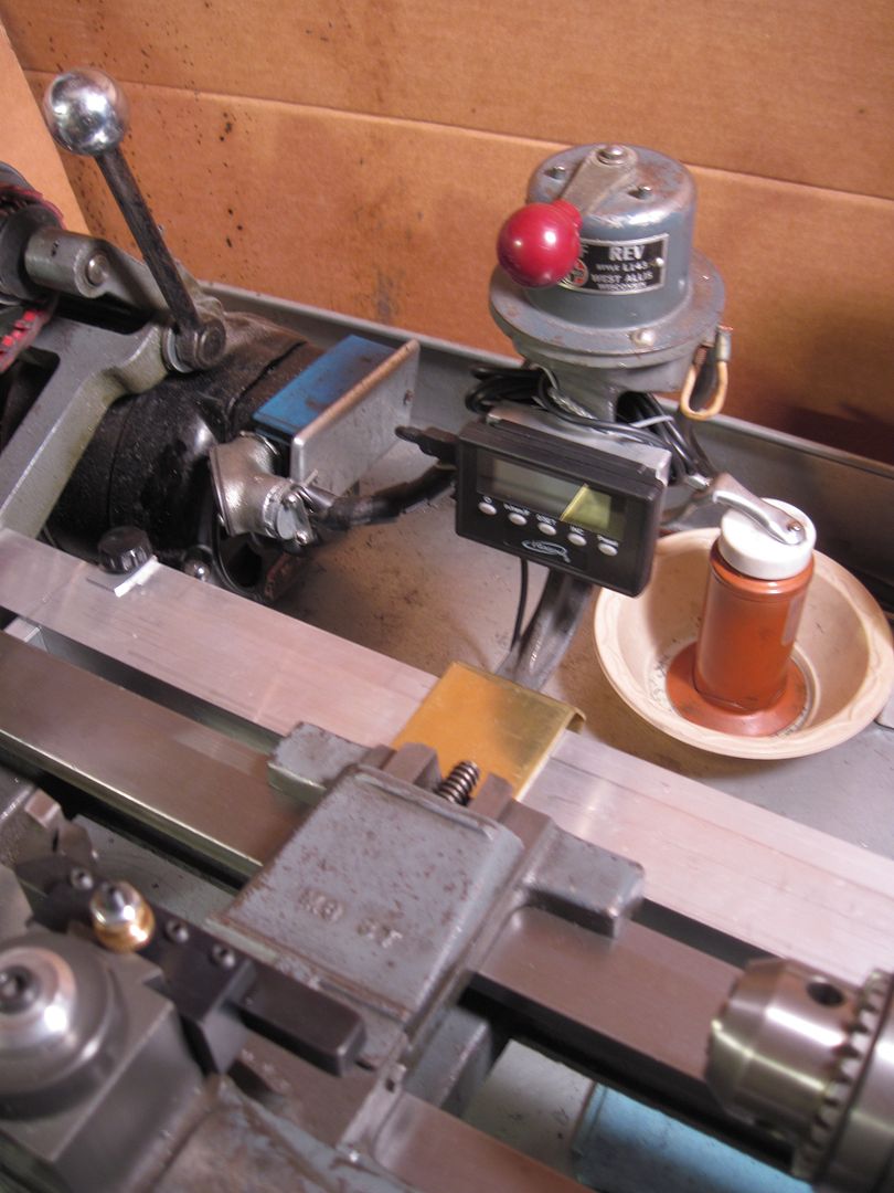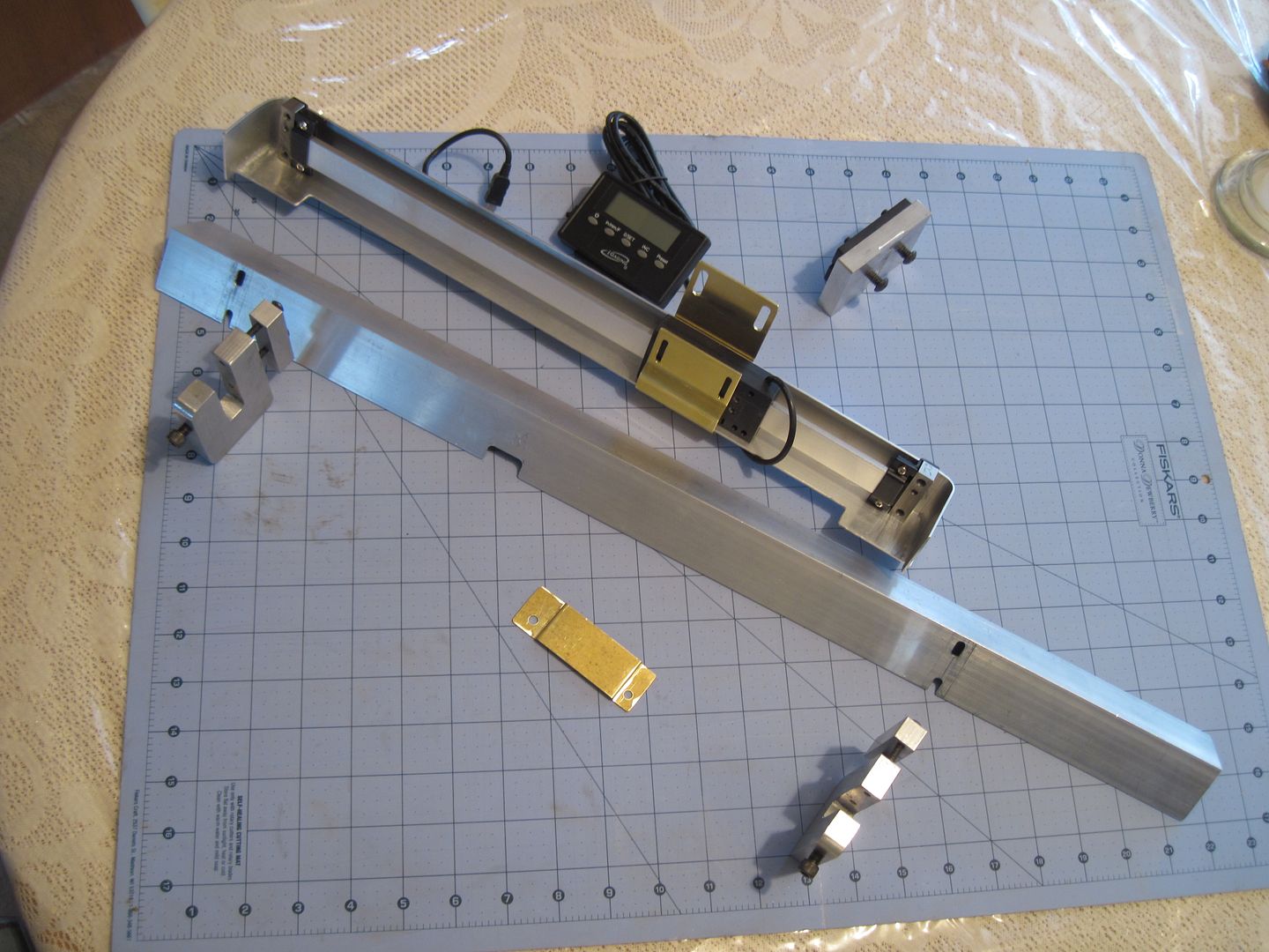 I have recently completed an upgrade on my lathe that has added a digital read-out (DRO) to the carriage travel along the length of the ways, which had no other form of indexing available originally. It was quite a complex little addition actually, so I thought I might share a photo or three here. Actually, there was absolutely no modification to the stock lathe itself, as I made the entire assembly for the DRO system as an add-on via clamps, so there were not even any holes drilled and tapped into any part of the original machine. There was a minor problem in that the lathe offers an 18" bed, but the DRO scale that I was able to affordably obtain only offered 12" of travel, so I had to make the housing for it be slide adjustable so that it could cover the full length of the useable carriage travel. Of course 99% of all work seems to get done in the first 12" anyway, but there will always be some project wanting the full length of the bed, so that is now a possibility as well.