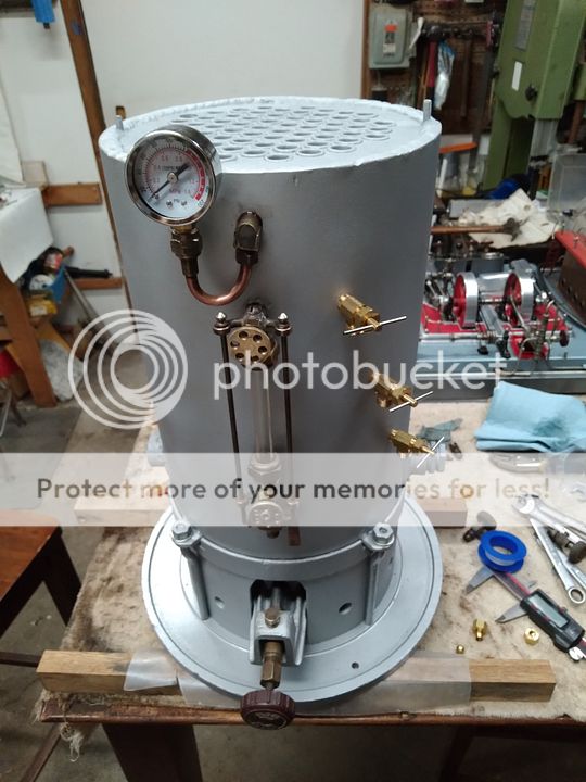 Wow, Bruce, this is really nice--it's the first time I've seen this thread. It's a great boiler and you've done a beautiful restoration. I was particularly impressed with the burner which would also work well for a hot air engine--very well engineered. Did you have to change out the jet to a smaller size for propane? Any way to refit those nice early try cocks with the round handles? I still have a hard time believing this was home built in a shop--looks factory to me.